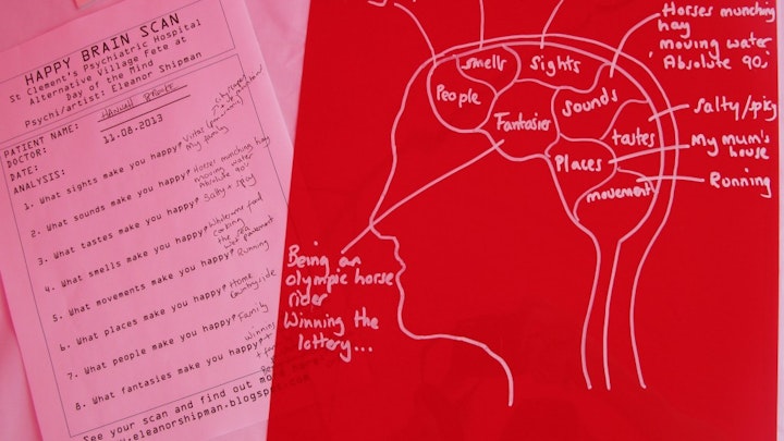 Punters at Home Live Art’s ‘Alternative Village Fete’ at Shuffle Festival were invited to conducted their own ‘Happy Brain’ scans for Eleanor's workshop stall.