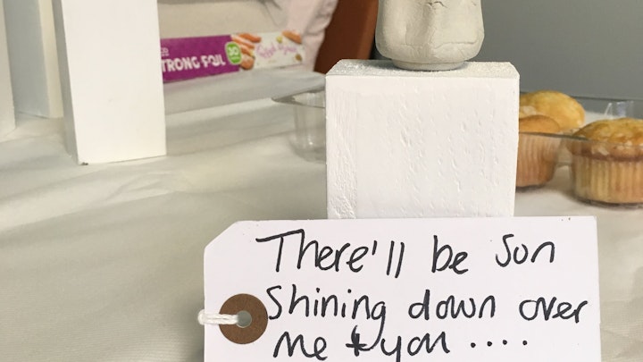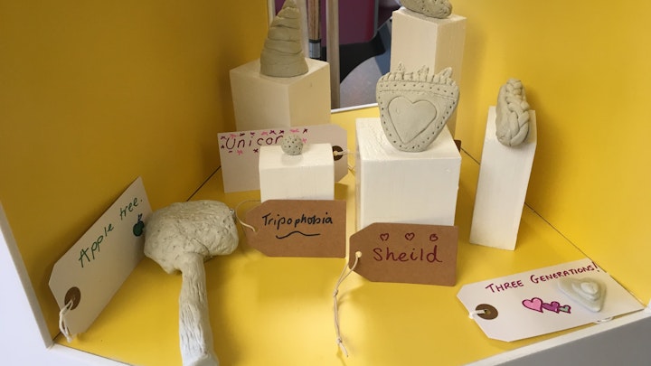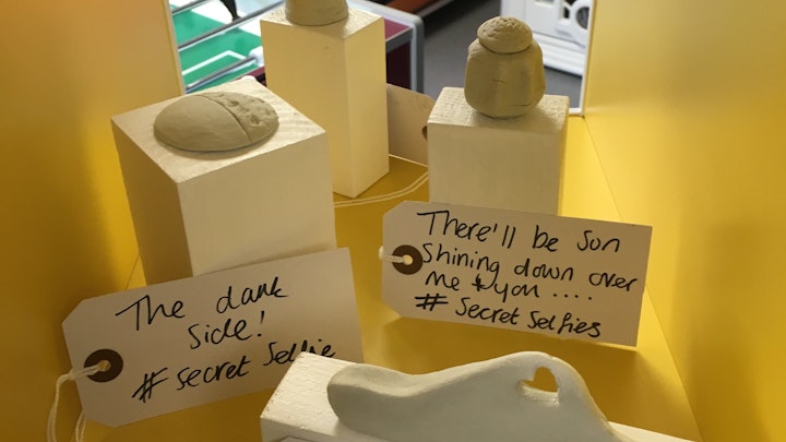 #SECRETSELFIES invited teenage patients at Bristol's Haemotology and Oncology Centre to create mini, abstract and sculptural self-portraits exploring identity. The portraits were made using air-drying clay so they could be immediately installed on mini-plinths in the unit and left to dry for patients to take home when they are discharged.